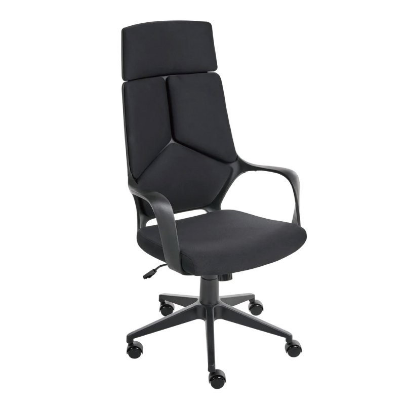 This contemporary office chair combines sophisticated design with advanced ergonomic support, making it an ideal choice for any modern study or home office. Featuring an adjustable seat height and a responsive tilting backrest, it can be effortlessly customized to fit your individual seating preferences. The high-back design, complete with an integrated headrest, promotes proper spinal alignment and helps maintain healthy posture during extended periods of work. Upholstered in durable, comfortable polyester, the generously padded seat and back ensure lasting comfort and resilience through daily use.